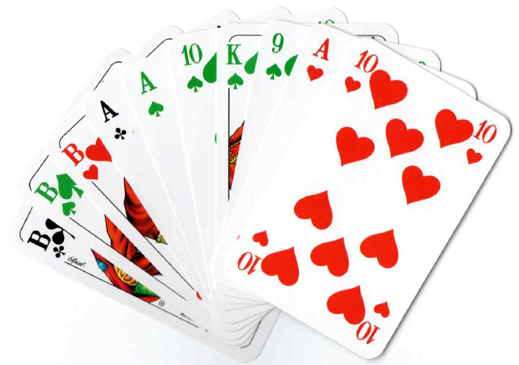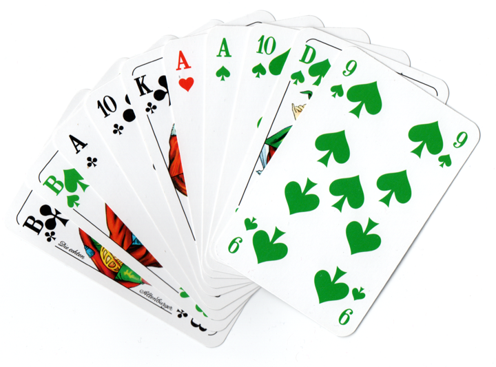 Roland Haase Spielte am 14.08.2020 mit diesen Karten das Großspiel im Skat, einen Grand Ouvert.